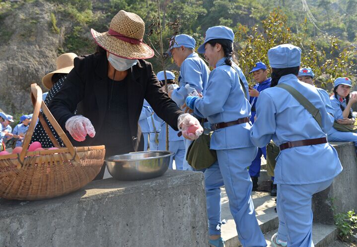 一路上,天信队员发挥了发扬了红军不怕艰苦、团结奋进、克服困难的革命精神。尽管山路崎岖,两边杂草丛生,但队员们依旧排着整齐的队伍,勇往直前,激情高歌,每当有队员感到体力不支放慢速度时,其它队员不由而约地为其加油鼓劲,并在政委的指挥下喊出整齐响亮的队号天信天信,奋勇前进,伴随着一声声铿锵有力的呐喊声音,队员们又重新充满了力量!在龙井休息站,队员们分享到了当地老百姓分发的红糖包和红鸡蛋。因为本次天信是作为一个团队参加这种大型活动,所以每位天信队员都特别注意自身言行,自觉地把产生的垃圾装袋后带走,用实际行动践行着天信人爱护环境的承诺。