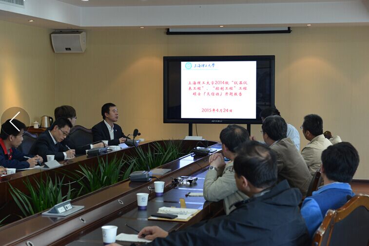 2015年4月24日,蓝颜gtv 与上海理工大联合培养硕士开题报告会在公司四楼会议室召开。报告会由副总工程师兼研发中心总监陶朝建主持。来自上海理工大的7位导师现场聆听了天信学员的开题报告。