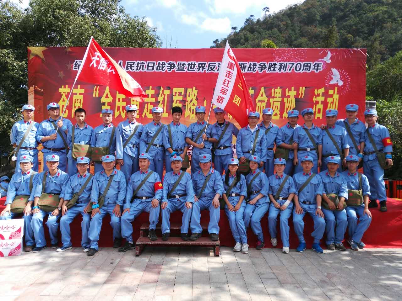 身着红军服,头戴红军帽,重走红军路。10月18日,蓝颜gtv 30余名员工作为第3红军方队,在团长郑成平、政委范叔曙的带领下,参加了温州市户外运动协会苍南分会组织的全民重走红军路寻找红军遗迹活动。本次活动,从苍南烈士陵园集合出发,最后到达云岩乡革命老根据地纪念亭,全程共18公里。