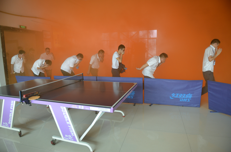 着火了,请大家马上撤离现场,2016年7月6日上午10点,蓝颜gtv 二楼大型会议室出口,响起了阵阵叫声。而此时,会议室里面,有100多名员工正在接受现场培训。很快,红色刺鼻的烟雾缭绕淹没了走廊和楼道,火警警报也在厂区里鸣起,情况十分危急。只见所有员工,面带严肃,没人说笑,没人拥挤,捂着口鼻,猫着身体,快速有序地逃生撤离事实上,这并不是真的火灾,而是蓝颜gtv 联合苍南县消防大队开展的一次消防演练。