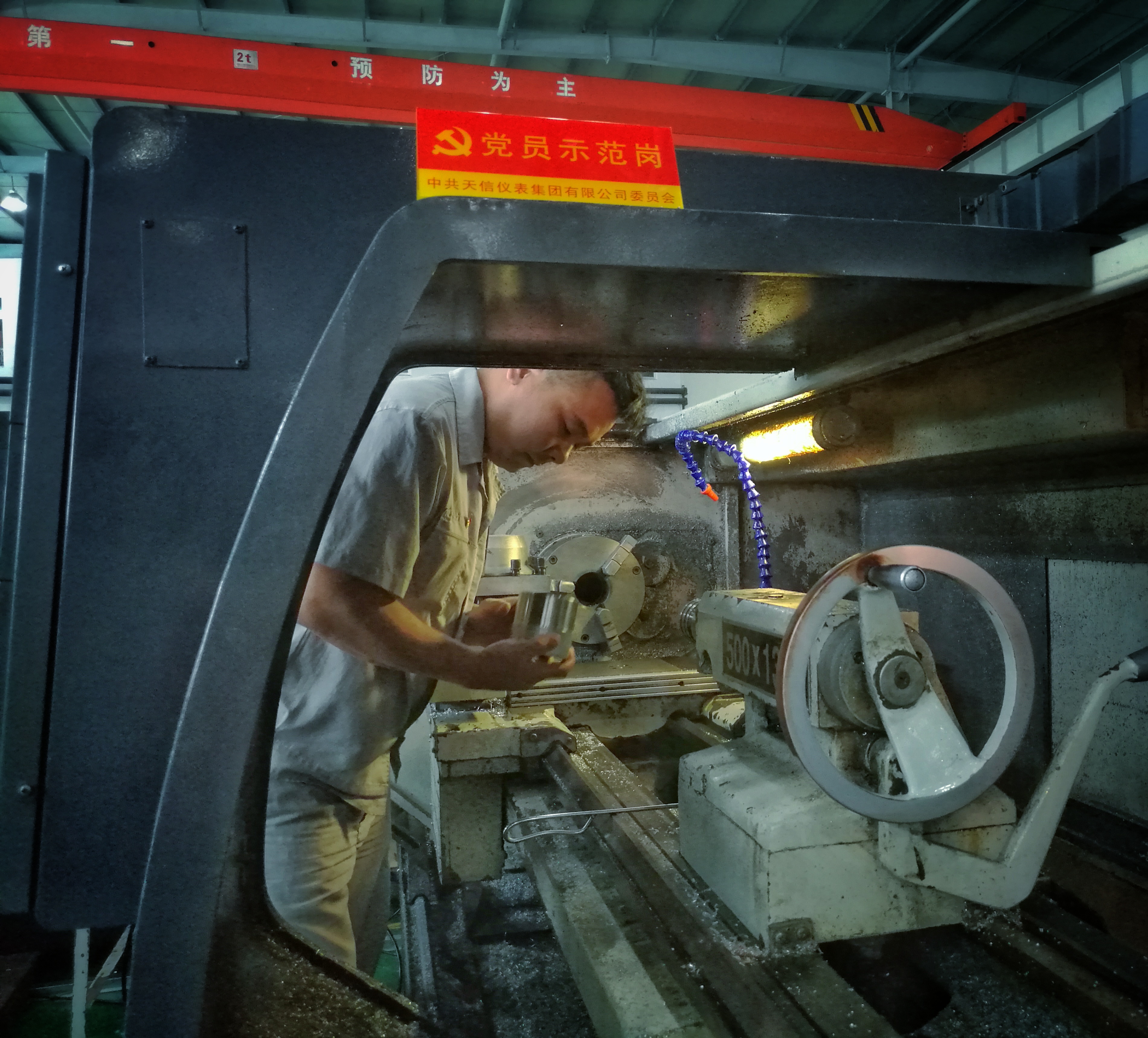 到了天信,拍客们兵分两路,分别赴生产车间和研发中心拍摄党员生产突击队和党员技术攻关小组。陈秀师傅,请你头侧过来一点黄崇营师傅,让我们帮你和徒弟一起拍张照片,麻烦董工、谢工介绍一下自己的工作,随着一个个场景的设置、构图的调整,在拍客的镜头下,天信党员的形象变得具体、生动起来,为企业生产经营工作注入了动力和活力。